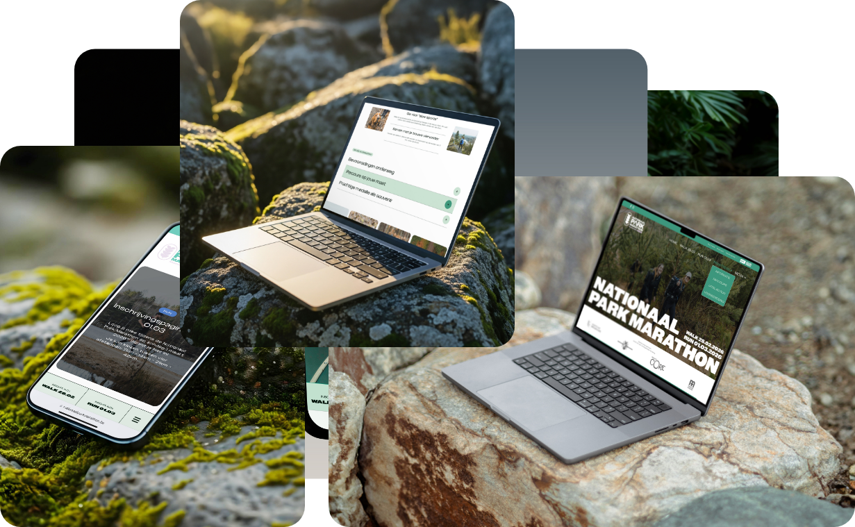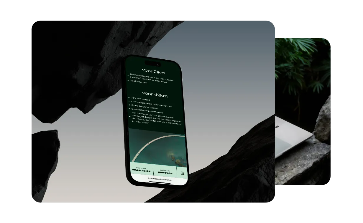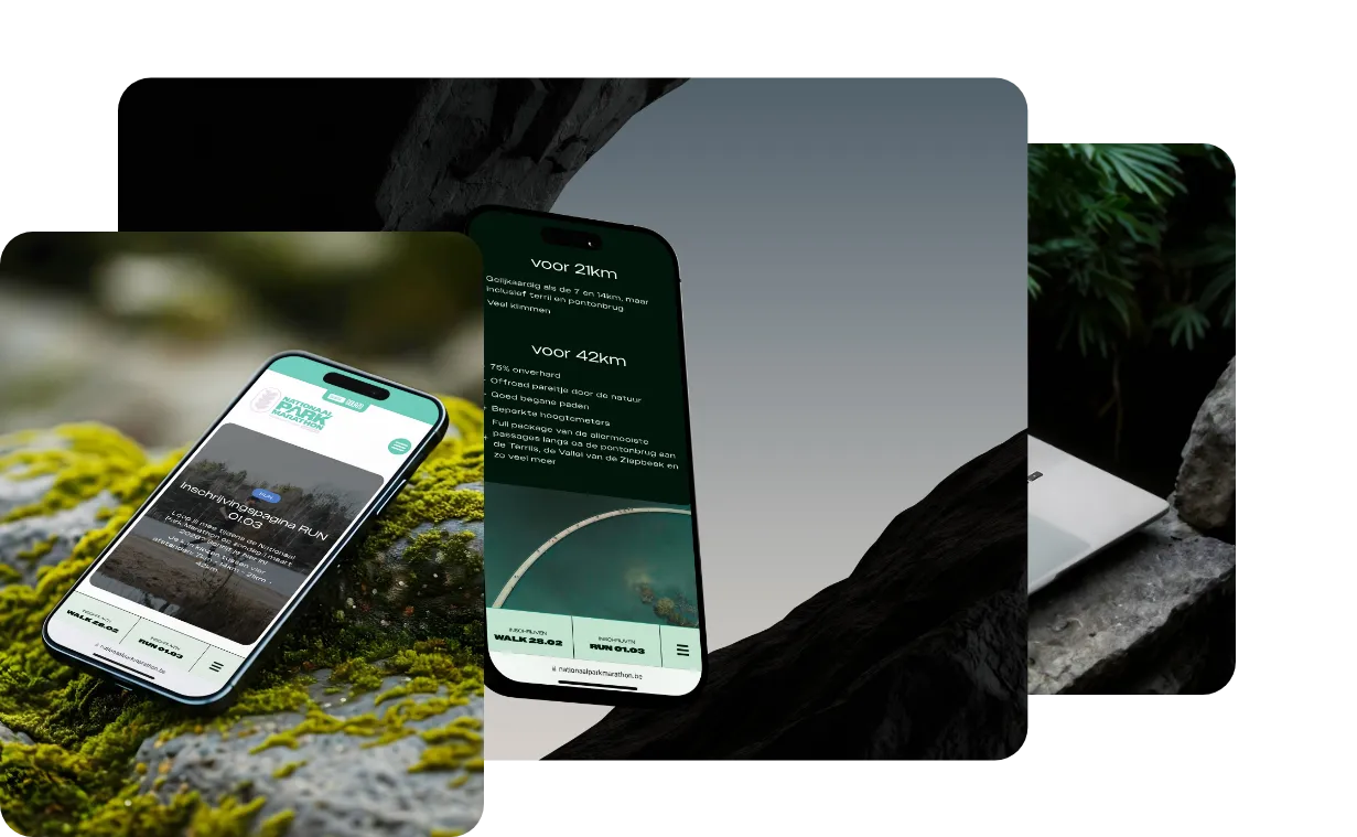Voor de editie van 2025 gaven we de website van de Nationaal Park Marathon een nieuw leven. De klant wilde de natuur, het avontuur en de sfeer van de Hoge Kempen voelbaar maken vanaf de eerste klik. Waar de vorige site wat dof en statisch aanvoelde, brachten we nu ritme, kleur en beweging. Zo groeide de website uit tot een digitaal verlengstuk van het evenement, vol energie en beleving.